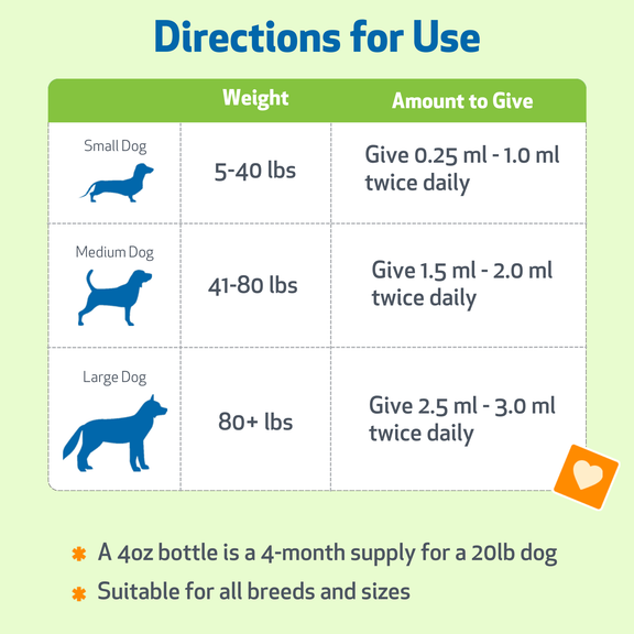- 4 oz (118 ml) is a 1-month supply for most large dogs